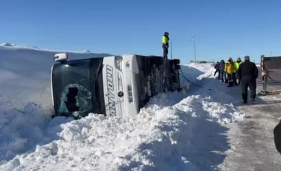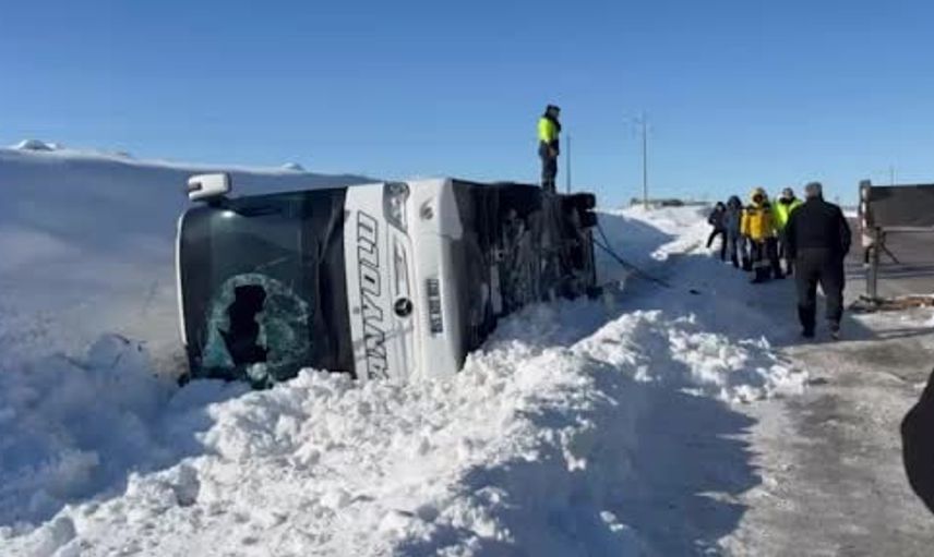 Edinilen bilgilere göre, Hatay'dan Van'a giden 65 ADD 803 plakalı Mercedes marka otobüs, yolun kaygan olması nedeniyle sürücünün kontrolü kaybetmesi sonucu devrildi.