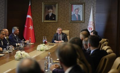 Gençlik ve Spor Bakanı Dr. Osman Aşkın Bak (ortada), Fenerbahçe Kulübü başkanlığına seçilen Sadettin Saran (sağ 3) ve yönetim kurulu üyelerini kabul etti. Gençlik ve Spor Bakanlığı merkez binasında gerçekleşen kabulde, Fenerbahçe yönetimi tam kadro yer aldı.