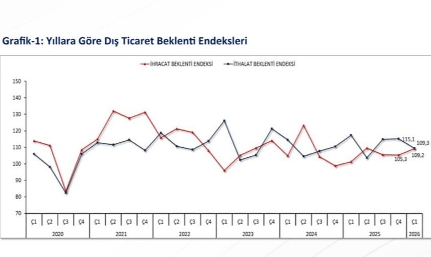 Bolat, sosyal medya hesabından paylaştığı açıklamada 2026 yılı birinci çeyrek İhracat Beklenti Endeksinin bir önceki çeyreğe göre 3,9 puan artışla 109,2 seviyesine çıktığını; endeksin 100 üzerinde olmasının ihracata dair beklentilerin yükseldiğini gösterdiğini söyledi.