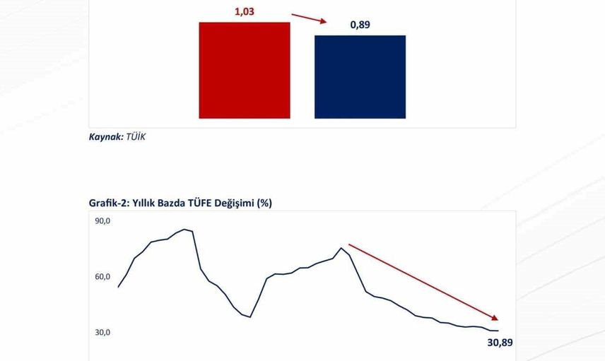 Gerilemenin kayda değer olduğuna dikkat çeken Bolat, 'Yıllık enflasyon son 49 ayın en düşük seviyesine gerilemiştir. 2024 yıl sonu enflasyonuna göre 13,49 puanlık düşüş gerçekleşmiştir' değerlendirmesinde bulundu.