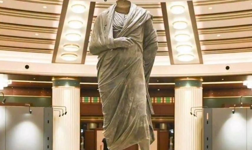 Bildiride, Burdur Boubon Antik Kenti kökenli bronz Marcus Aurelius heykelinin ABD'den getirilerek Cumhurbaşkanlığı Millet Kütüphanesi'nde düzenlenen 'Arkeolojinin Altın Çağı' sergisinde halka sunulduğu belirtildi.