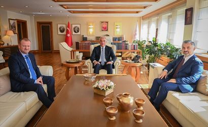 Kültür ve Turizm Bakanı Mehmet Nuri Ersoy (ortada), Radyo ve Televizyon Üst Kurulu (RTÜK) Başkanı Mehmet Daniş (solda) ve Türk Telekom üst düzey yöneticisi (CEO) Ebubekir Şahin'i (sağda) makamında kabul etti.