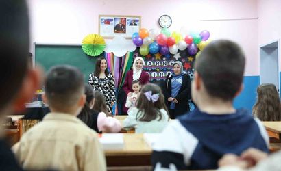 Tören için gittiği Şehit Muhammed İsmail Kaya İlkokulu’nda Göktaş, sınıftaki diğer öğrencilere de karnelerini takdim ederek onlarla hatıra fotoğrafı çektirdi.