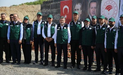 Tarım ve Orman Bakanı İbrahim Yumaklı (sol 6), Bingöl temasları kapsamında, Devlet Su İşleri (DSİ) 9. Bölge Müdürlüğü tarafından Şehitlik Anıtı mevkisinde inşası süren 5 bin metreküp kapasiteli içme suyu deposunda incelemelerde bulundu.