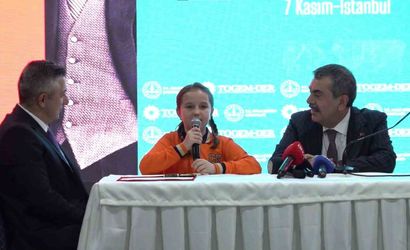 Mikrofon yeniden uzatıldığında aynı öğrenci duygularını daha rahat ifade etti: "Öğretmenlerime, başkanlarıma ve Bakanıma teşekkür ediyorum. Kütüphane açtıkları için de teşekkür ediyorum. Hepinizi çok seviyorum. Arkadaşlarıma da iyi tatiller diliyorum." Bu sözler salonda alkışla karşılandı.