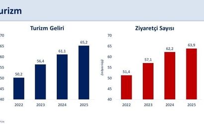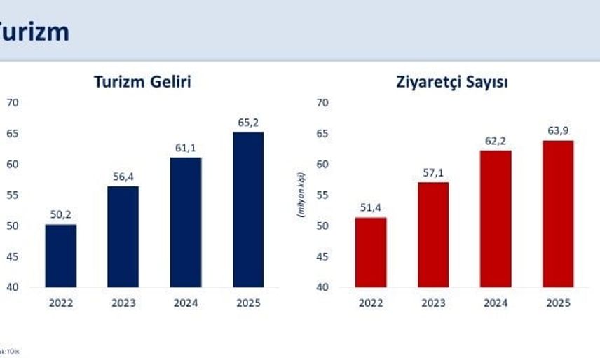 Turizm cephesinde geçen yıl Türkiye'nin 63,9 milyon ziyaretçi ağırladığını ve 2025'te turizm gelirlerinin yüzde 6,8 artışla 65,2 milyar dolara ulaştığını kaydeden Şimşek, 'Turizmi dört mevsime ve farklı alanlara yaymaya yönelik politikalarımızın katkısıyla kişi başına ortalama harcama bin doların üzerine yükseldi' ifadelerini kullandı.