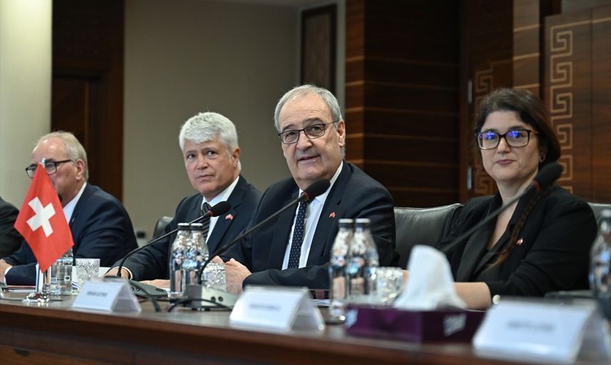 Hazine ve Maliye Bakanı Mehmet Şimşek (sağda), İsviçre Konfederasyonu Başkan Yardımcısı ve Ekonomik İşler, Eğitim ve Araştırma Bakanı Guy Parmelin (solda) ile görüştü.