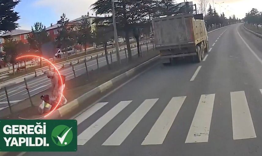 Görüntülerde sağ şeritteki araçların yayalara yol verdiği, ancak sol şeritten gelen kamyonun yaya önceliğini hiçe saydığı ve yayaları tehlikeye attığı görülüyor. Trafik ekiplerinin çalışmasıyla kamyon sürücüsü C.A. tespit edilip yakalandı; sürücü hakkında gerekli işlemler uygulandı.