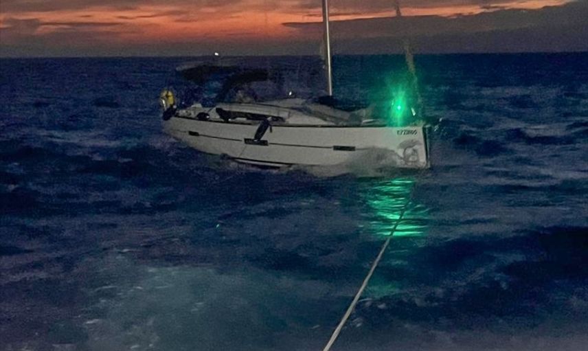 Yapılan açıklamaya göre, kumanda dışı kalarak sürüklenen 13 metre uzunluğundaki tekne, içinde bulunan 2 kişiyle birlikte kurtarıldı.
