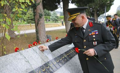 Büyükelçi Akgün, Şehitlik AnıtıAzerbaycan Savunma Bakanlığı Askeri Bandosu tarafından İstiklal Marşı ile Azerbaycan Milli Marşı icra edildi.