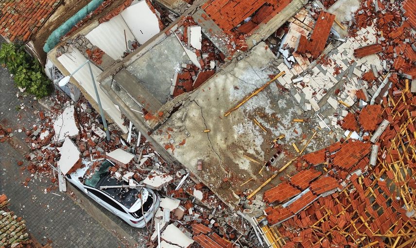 Depremin ardından ekipler, gece boyunca devam eden sağanağa rağmen, sabahın ilk ışıklarıyla birlikte hasar tespit ve yardım çalışmalarını hızlandırdı. AA ekipleri, havanın aydınlanmasıyla birlikte bölgedeki hasarı dron ile görüntülemeyi başardı. Yıkılan Binalar ve Enkaz Çalışmaları
