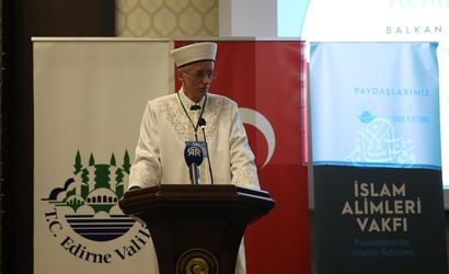 Edirne'de İslam Alimleri Vakfınca Valilik ev sahipliğinde düzenlenen "Kendi Gök Kubbemiz Balkan Alimleri Buluşması-2" programı ilk gün oturumlarıyla devam etti. İskeçe Seçilmiş Müftüsü Mustafa Trampa, programda konuşma yaptı.