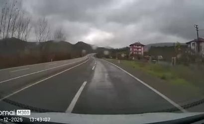 Kaza anı, ticari aracın kamerasına yansıdı ve olay sonucu otomobil sürücüsü yaralandı.