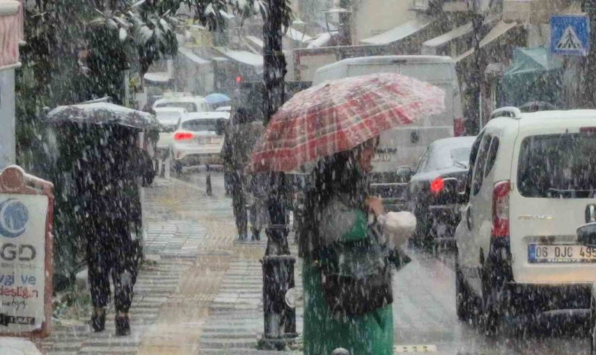 Bartın merkezinde 2025 yılının son günü öğle saatlerinde başlayan yağış, ilk anda sulu kar şeklinde görülse de kısa süre içinde lapa lapa kara dönüştü.