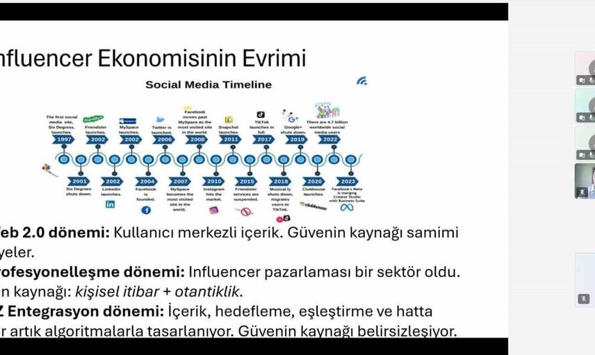 Doç. Dr. Yasemin Bilişli "Yapay Zekâ Çağında Influencer Ekonomisi: Dijital Güvenin Anatomisi" başlıklı sunumunda influencer ekonomisinin yapay zekâ destekli içerik üretimiyle nasıl evrildiğini aktardı.