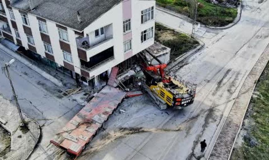 Başakşehir'de tırdan kopan vinç binaya saplandı, çıkarma çalışmaları 28. saate ulaştı