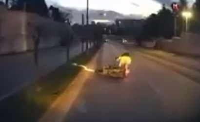 İstanbul’un Başakşehir ilçesinde, asfalttaki derin bir çukur nedeniyle kontrolünü kaybeden motosikletli bir genç, yola savruldu. Kaza anı, çevredeki bir aracın kamerası tarafından kaydedildi.