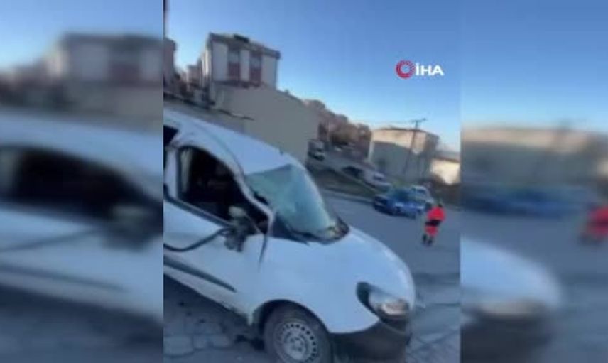 Başakşehir'de taşıma sırasında kopan vinç 2 araca ve binaya çarptı