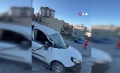 Başakşehir'de taşınan vinç koptu: 2 araca ve bir binaya çarptı