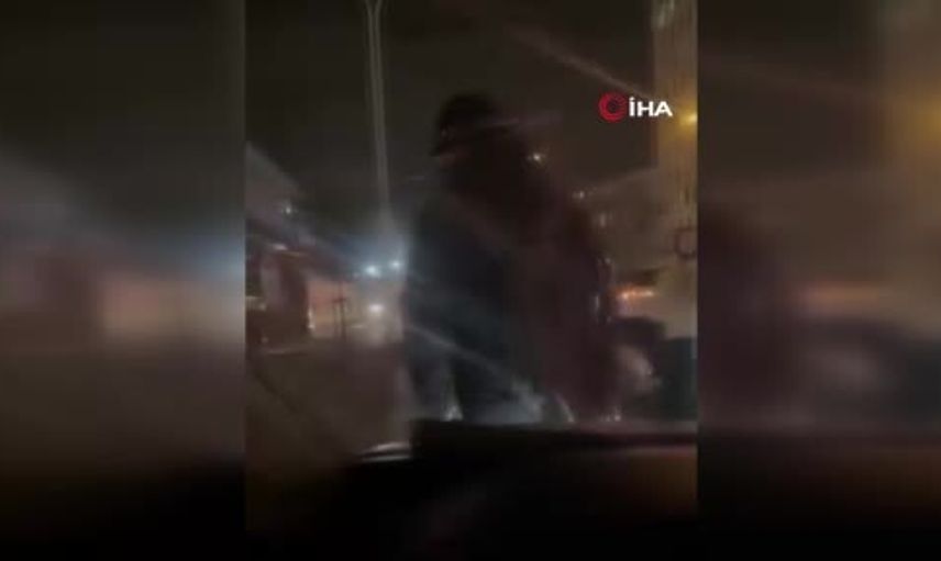 Görüntüler: Çevredeki cep telefonu kamerası tarafından kaydedilen görüntülerde, bir kadının diğer aracın kapısını tekmelediği ve çevredekilerin olaya müdahale etmeye çalıştığı anlar yer alıyor.
