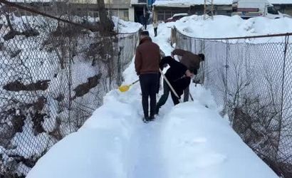 İlçede örtüyü bulan kar kalınlığının 2 metreyi bulması üzerine köy sakinleri, köprünün kırılma veya zarar görme riskine karşı her kış nöbet tutuyor. Endişeyi gidermek için gençler kazma ve küreklerle köprü üzerinde biriken karı temizleme çalışması başlattı.