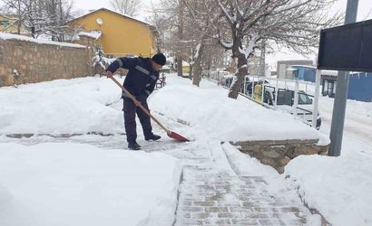 Başkale Belediyesi, şehir merkezinde yürüttüğü yoğun mesaisinde 4 kamyon, 6 iş makinesi ve 20 personel ile karı tahliye ediyor. Esnaf da kar kürekleriyle işyeri önlerini ve kaldırımları temizleyerek çalışmalara destek veriyor.