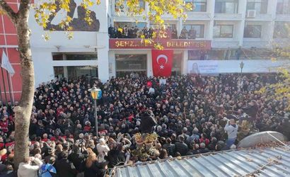 Cenaze töreninin devamı: Belediye önündeki törenin ardından Durbay’ın naaşı belediye önünden alınarak, Cumhuriyet Meydanı’nda kılınacak cenaze namazı öncesi Hatuniye Camii’ye götürüldü.