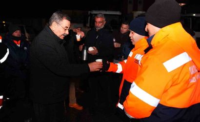 Başkan Odabaşı'ndan karla mücadele ekiplerine sabah ziyareti
