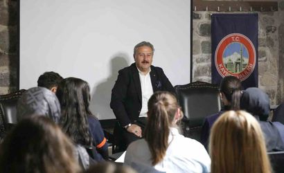 Melikgazi Belediye Başkanı Doç. Dr. Mustafa Palancıoğlu, Kayseri Valiliği ve Melikgazi Belediyesi iş birliğiyle hayata geçirilen Mektep Melikgazi Sosyal Bilimler Okulu öğrencileriyle bir araya geldi. Tarihi Filinta Konağı’nda gerçekleştirilen Kariyer İnceleme dersinde samimi bir ortamda öğrencilerle sohbet eden Palancıoğlu, yaşamından ve mesleki tecrübelerinden örnekler vererek gençlere yol gösterdi.