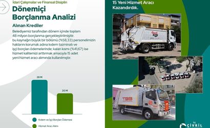 2024-2025 döneminde belediyenin toplam 48 milyon TL kredi kullandığını söyleyen Dere, bu kredinin yüzde 58,33'lük bölümüne denk gelen 28 milyon TL'nin personel haklarını korumak amacıyla kıdem tazminatları ve işçi alacaklarının ödenmesinde; yüzde 41,67'lik kısmına denk gelen 20 milyon TL'nin ise belediyenin hizmet kapasitesini artırmak için alınan 15 adet hizmet aracı'nın finansmanında kullanıldığını açıkladı.