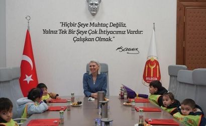 Bilecik Belediye Başkanı Melek Mızrak Subaşı, kreş öğrencileri ve öğretmenlerini belediyede kabul etti.