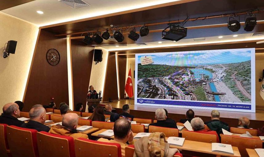Yaklaşık bir saat süren slayt sunumuyla 2025 faaliyetlerini aktaran Yalçın, Talas'ın son bir yılda kaydettiği ilerlemeyi ayrıntılarıyla özetledi.