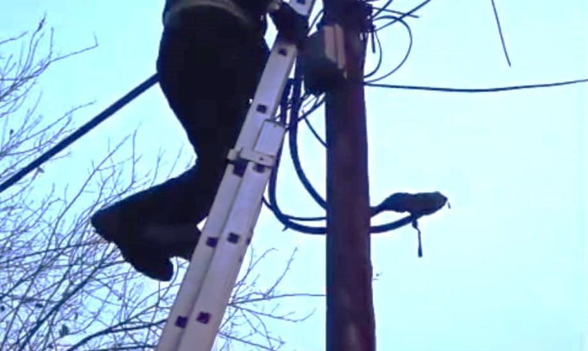Kısa sürede olay yerine yönlendirilen itfaiye ekipleri, mahsur kalan kediye ulaşmak için direğe merdiven dayadı. İtfaiye eri güvenli şekilde ulaştığı kediyi nazikçe aldı ve aşağı indirdi.