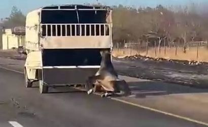 Batman-Siirt çevre yolunda bir kamyonetin arkasına bağlanan atın, araç arka kapısı açılınca yola düşerek bağlı halde sürüklendiği anlar cep telefonu kamerasına yansıdı.