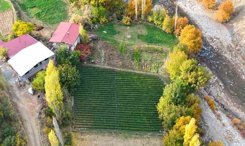 Sarı, turuncu ve kızıl tonlarının baskın olduğu orman dokusu; kıvrılarak ilerleyen yollar ve dağ eteklerine yaslanmış evlerle birleşince etkileyici bir panorama meydana geldi. Doğanın renklerini sergilediği bu alan, görüntüyü izleyenlerin beğenisini topladı.