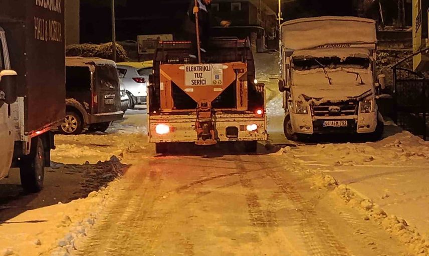 Battalgazi Belediyesi ekipleri, bir süredir devam eden karla mücadele çalışmalarını akşam saatlerinde başlayan kar yağışıyla birlikte gece boyunca sürdürdü. Ekipler, ilçe genelinde tuzlama ve kar küreme faaliyetlerini aralıksız şekilde yürüttü.