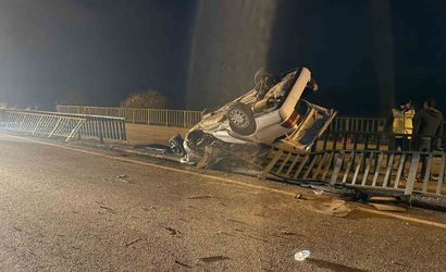 AFYONKARAHİSAR'IN BAYAT İLÇESİNDE KÖPRÜ DEMİRLERİNE ÇARPARAK HURDA YIĞININA DÖNEM OTOMOBİLDE 1 KİŞİ ÖLDÜ, 3 KİŞİ DE YARALANDI.
