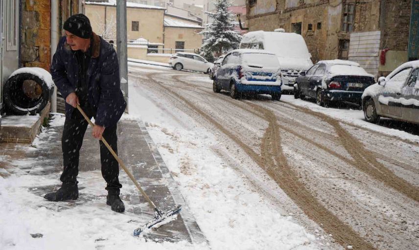 Sabahın ilk ışıklarıyla birlikte artan yağış sonrası kent merkezinde beyaz örtü oluştu. Önce dondurucu soğukların hissedildiği bölgede yağışla birlikte hava nispeten ılımanlaştı. Vatandaşlar ev ve iş yerlerinin önündeki karı temizleyerek güne başladı.