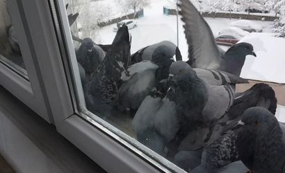 Soğuk ve kıtlaşan besin kaynakları nedeniyle aç kalan güvercinler, kent merkezindeki pencere önlerine bırakılan yemlere yöneldi. Bir vatandaşın pencere önüne döktüğü bulgur, sabah gelen güvercinlerin kahvaltısı oldu; pencerede toplanan kuşlar yemlere erişmek için adeta yarıştı.