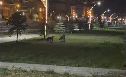 O anlar, yoldan geçen bir vatandaşın cep telefonu kamerasına yansıdı. İnsanlardan uzak ve ürkek olmalarıyla bilinen tilkiler, genellikle insanların olmadığı gece saatlerinde yerleşim alanlarına inip yiyecek arıyor.