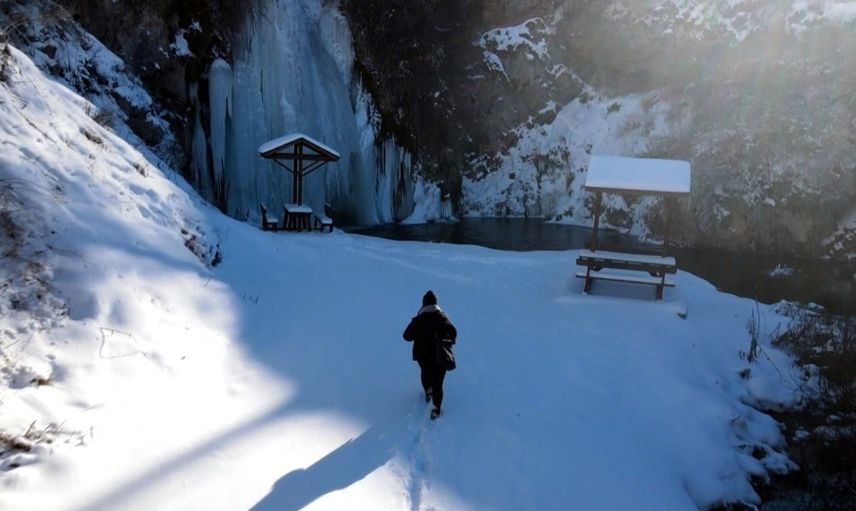 Soğuk hava, şelaleyi kartpostallık bir görünüme bürüdü
