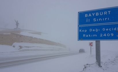 Bayburt-Erzurum kara yolu üzerindeki 2 bin 400 rakımlı Kop Dağı Geçidinde ise ulaşımın aksamaması için Karayolları ekipleri karla mücadele çalışmalarına başladı.