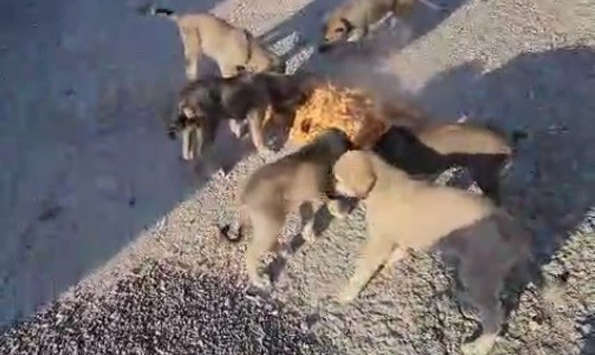 Aracını park eden Ata, yüksek bir duvarın üzerinden hayvanlara seslendi; sesini duyan sokak köpekleri koşarak yanına geldi. Tenceredeki yemeği hayvanların yemesi için yere döken Ata’yı gören yavrular kısa sürede yemeğe saldırırken, anne köpeğin uzaktan yavruları izlemesi dikkat çekti.