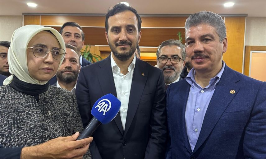 Bayrampaşa Belediye Başkan Vekilliğine İbrahim Akın'ın seçilmesinin ardından AK Parti İstanbul İl Başkanı Özdemir (ortada), belediye binasında basın mensuplarına açıklamada bulundu.