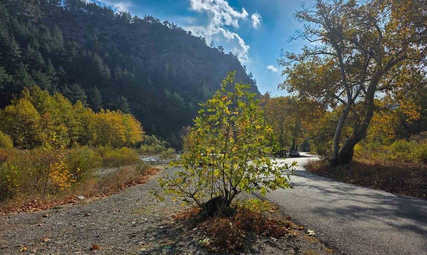 Belemedik Tabiat Parkı, Adana'nın Pozantı ilçesinde Kasım ayında çınar ağaçlarının yeşil ve sarının bin bir tonunu barındıran görünümüyle adeta bir tabloyu andırdı.