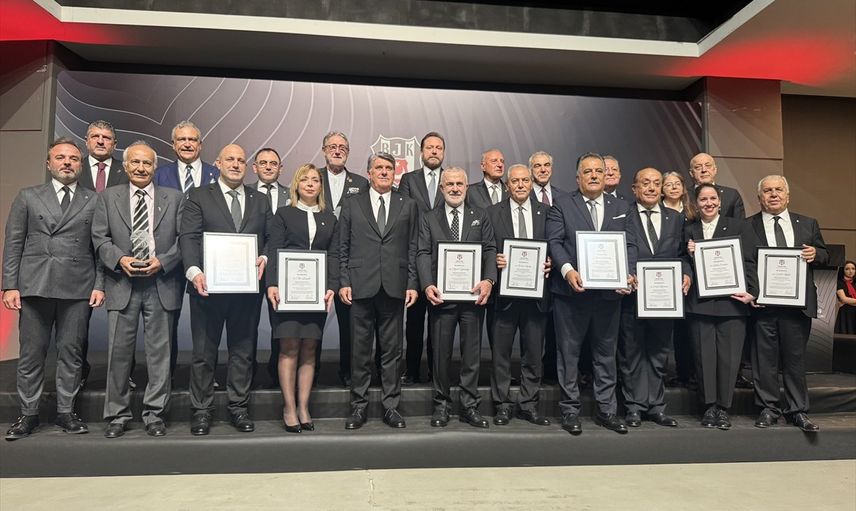 Beşiktaş Kulübünde divan kurulu başkanlığına seçilen Ahmet Ürkmezgil (ortada) ile kurul üyeleri düzenlenen törenle mazbatalarını aldı.