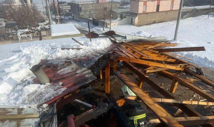 Beşpınar İlkokulu'nda sobadan çıkan kıvılcımla çatıda yangın