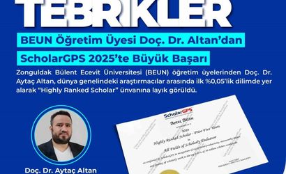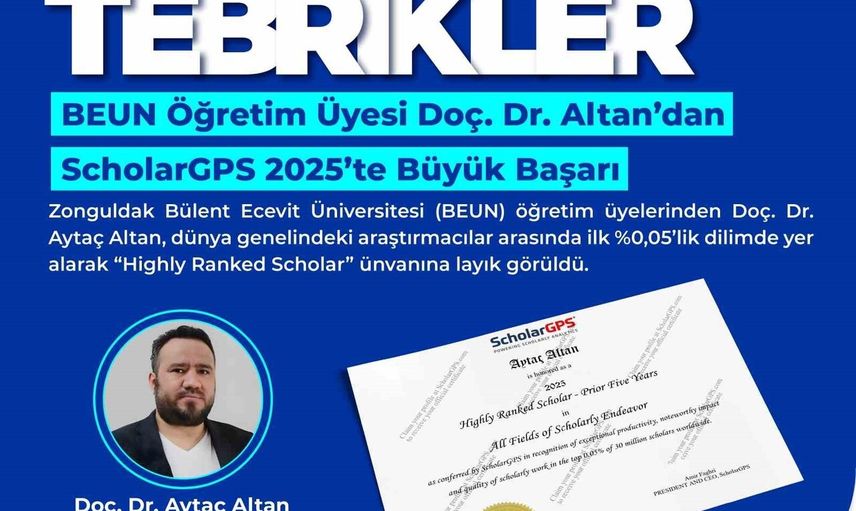 Zonguldak Bülent Ecevit Üniversitesi (BEUN) öğretim üyelerinden Doç. Dr. Aytaç Altan, uluslararası akademik performans ve etki analiz platformu ScholarGPS tarafından açıklanan 2025 Scholar Rankings sonuçlarında önemli bir başarıya imza attı. Altan, dünya genelindeki araştırmacılar arasında ilk %0,05'lik dilimde yer alarak Highly Ranked Scholar unvanına layık görüldü.