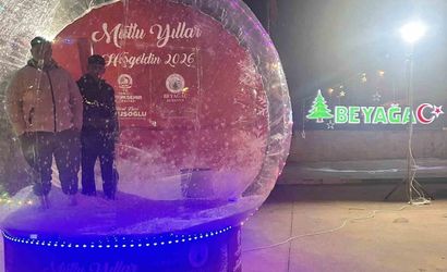 Beyağaç Belediyesi, vatandaşların yılbaşı anılarını renkli ve etkileyici bir şekilde kalıcı kılmak amacıyla Beyağaç Çarşı Meydanı'na dev bir kar küresi yerleştirdi.