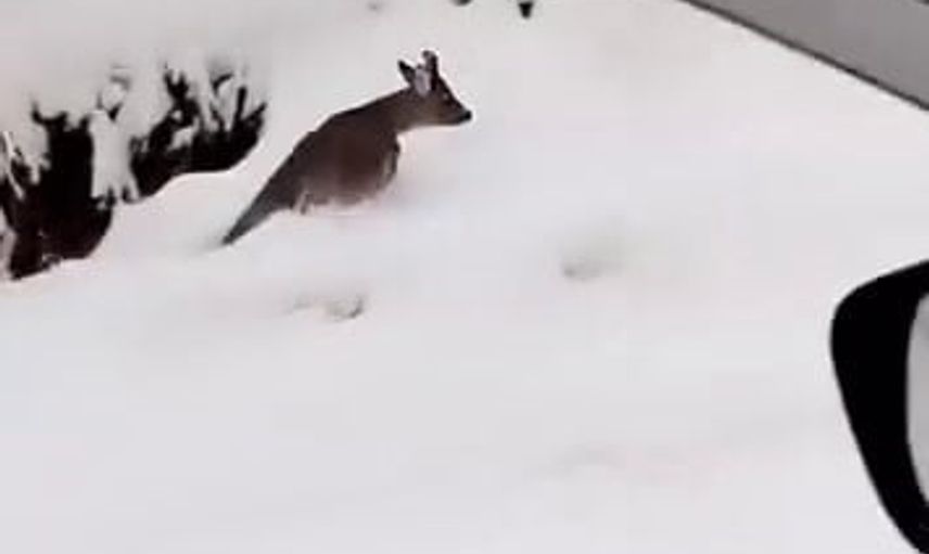 Aile aracıyla ilerlerken, karlı yola inen karaca bir süre araçtaki kişilere baktı. Ardından hayvan ormanlık alana doğru koşarak uzaklaştı. Bu anlar aile tarafından saniye saniye görüntülendi.